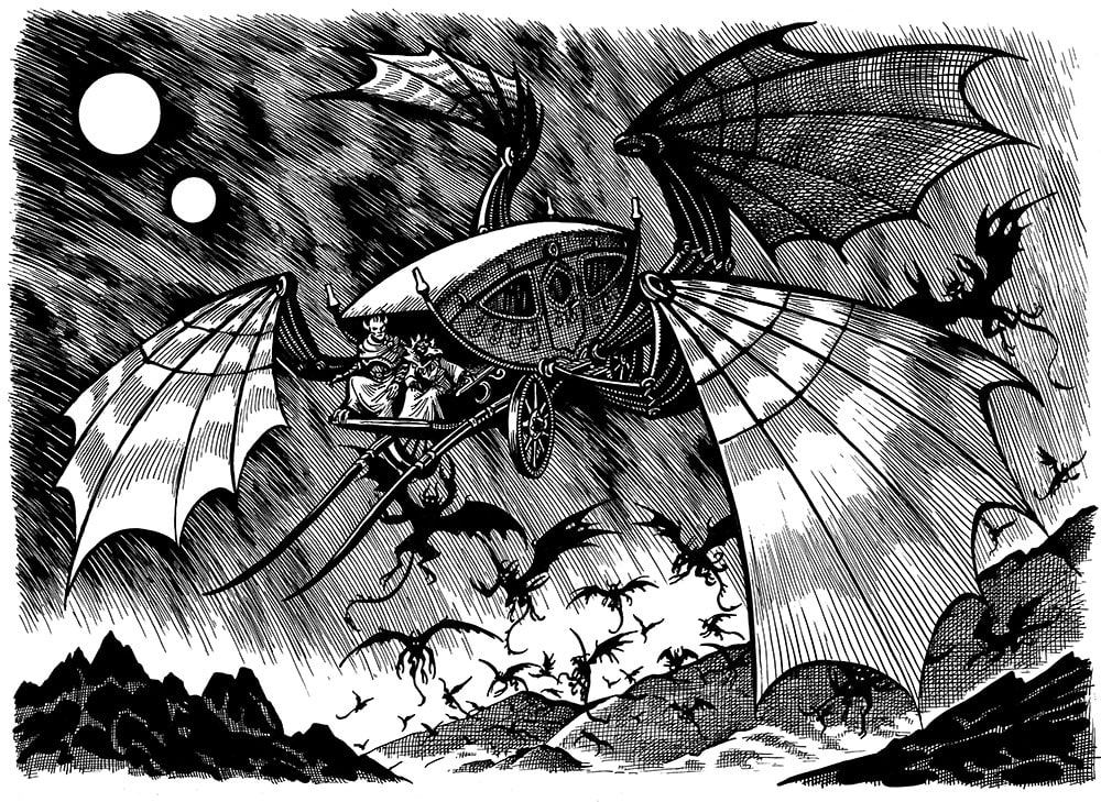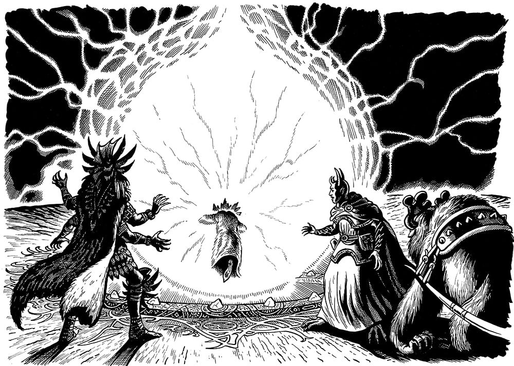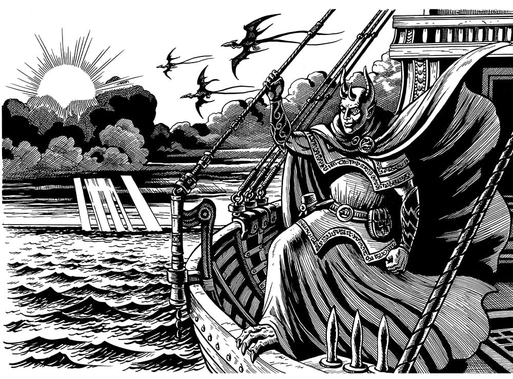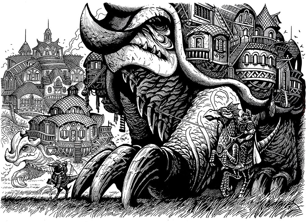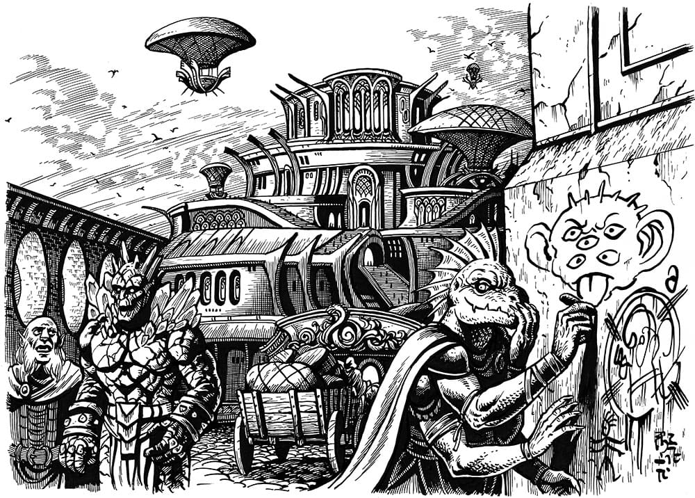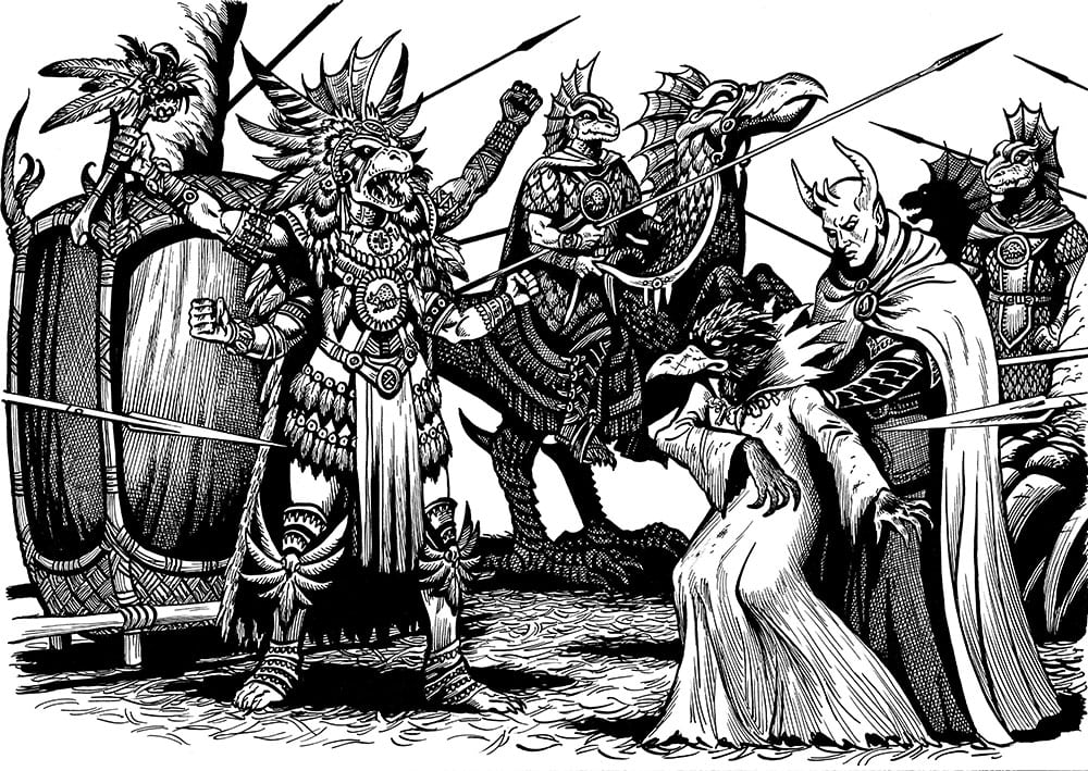 A four-armed pattangan traveler nodded, her dorsal fins flapping. “The demons make the honey-wine of life sour for the jungle clans, too. I thank my totems the city of my clan is built on the back of giant lizards and can move away from such peril.”